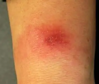 L. tropica causes a broad spectrum of leishmaniasis forms in humans. Most common is a variant called dry-type cutaneous leishmaniasis. After an incubation period lasting more than 2 months, a small brownish nodular lesion will appear with a slowly extending plaque reaching a size of 1–2 centimetres (0.39–0.79 in) after 6 months. This will heal after about 1 year but leaves a scar.[11] Other forms of the disease, which occur more rarely in humans, include visceral leishmaniasis, post-kala-azar dermal leishmaniasis (a variant of visceral leishmaniasis), viscerotropic leishmaniasis, and leishmaniasis recidivans (a variant of cutaneous leishmaniasis).[3]