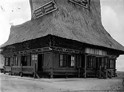 In medieval Latin, a place for the isolation and care of lepers was known as a leprosaria, leprosarium, or leprosorium, names which are sometimes used in English as well.[2] The Latin domus leprosaria was calqued in English as leper house,[3] with leper colony becoming by far the most common English term in the 1880s as the growing number of leprosy cases were discussed within the context of European colonialism. Less common synonyms include leper asylum, leper lodge, and leper hospital.[3] Other names derive from the figure of Lazarus in one of Jesus's parables,[4] treated by the Catholic Church during the Middle Ages as a historical figure and as the patron saint of both lepers and the Crusader Order of Saint Lazarus, who administered the leper colony in Jerusalem before spreading to other locations. This caused leper colonies to also be known as lazar houses[5] and, after the leper colony and quarantine center Lazzaretto Vecchio on the Republic of Venice's tiny island of Sta. Maria di Nazaret in the Venetian Lagoon, as lazarets, lazarettes,[6] lazarettos, and lazarettas.[7][8] The name leper[9] or leprosy village[10][11] is sometimes used for colonies in China, a calque of the Mandarin name máfēngcūn (t 麻風村, s 麻风村).