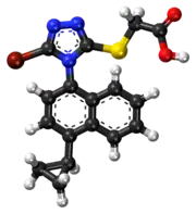 Lesinurad is a white to off-white powder and is not hygroscopic. It is a 1:1 racemic mixture of atropisomers.[9]