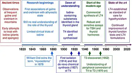 - ↑ Kahaly, George J.; Gottwald-Hostalek, Ulrike (2 November 2022). "Use of levothyroxine in the management of hypothyroidism: A historical perspective". Frontiers in Endocrinology. 13: 1054983. doi:10.3389/fendo.2022.1054983. ISSN 1664-2392.