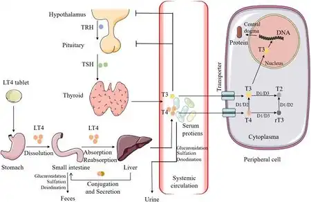 - ↑ Liu, Hanqing; Li, Wei; Zhang, Wen; Sun, Shengrong; Chen, Chuang (June 2023). "Levothyroxine: Conventional and Novel Drug Delivery Formulations". Endocrine Reviews. 44 (3): 393. doi:10.1210/endrev/bnac030.