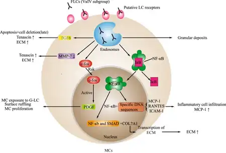 - ↑ 18.0 18.1 Wang, Qi; Jiang, Fang; Xu, Gaosi (25 November 2019). "The pathogenesis of renal injury and treatment in light chain deposition disease". Journal of Translational Medicine. 17 (1): 387. doi:10.1186/s12967-019-02147-4. ISSN 1479-5876.