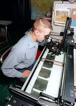 The TARPS shop maintained the cameras, and replaced the pods when necessary. Wet film processing would be conducted in a processing room connected to the ship's Intelligence Center (CVIC), where the Intelligence Specialist had a dedicated space with a light table for analyzing hundreds of feet of film.