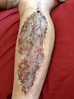 Thrombolysis using analogs of tissue plasminogen activator (tPA) may be used as an alternative or complement to surgery.[8] Where there is extensive vascular damage, bypass surgery of the vessels may be necessary to establish other ways to supply the affected parts.[8] Swelling of the limb may cause inhibited flow by increased pressure, and in the legs (but very rarely in the arms), this may indicate a fasciotomy, opening up all four leg compartments.[8]