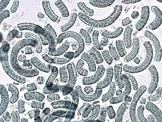 Limnospira is a genus of free-floating filamentous cyanobacteria characterized by cylindrical, multicellular trichomes in an open left-hand helix. A dietary supplement is made from L. platensis and L. maxima, known as spirulina. It was split from Arthrospira in 2019.[4][1]