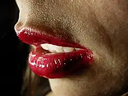 A woman's lips are also a visible expression of her fertility. In studies performed on the science of human attraction, psychologists have concluded that a woman's facial and sexual attractiveness is closely linked to the makeup of her hormones during puberty and development. Contrary to the effects of testosterone on a man's facial structure, the effects of a woman's oestrogen levels serve to maintain a relatively "childlike" and youthful facial structure during puberty and during final maturation. It has been shown that the more oestrogen a woman has, the larger her eyes and the fuller her lips, characteristics which are perceived as more feminine.[9] Surveys performed by sexual psychologists have also found that universally, men find a woman's full lips to be more sexually attractive than lips that are less so. A woman's lips are therefore sexually attractive to males because they serve as a biological indicator of a woman's health and fertility. A woman's lipstick (or collagen lip enhancement) attempts to take advantage of this fact by creating the illusion that a woman has more oestrogen than she actually has and thus that she is more fertile and attractive.[10]