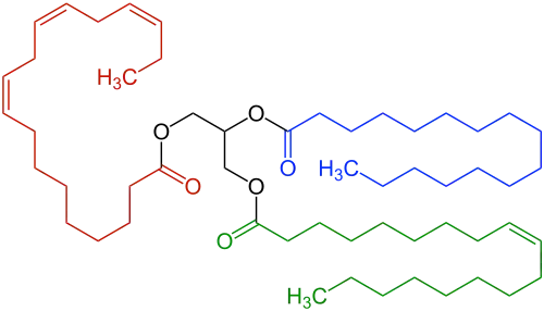 In the body, stores of fat are referred to as adipose tissue. In these areas, intracellular triglycerides are stored in cytoplasmic lipid droplets. When lipase enzymes are phosphorylated, they can access lipid droplets and through multiple steps of hydrolysis, breakdown triglycerides into fatty acids and glycerol. Each step of hydrolysis leads to the removal of one fatty acid. The first step and the rate-limiting step of lipolysis is carried out by adipose triglyceride lipase (ATGL). This enzyme catalyzes the hydrolysis of triacylglycerol to diacylglycerol. Subsequently, hormone-sensitive lipase (HSL) catalyzes the hydrolysis of diacylglycerol to monoacylglycerol and monoacylglycerol lipase (MGL) catalyzes the hydrolysis of monoacylglycerol to glycerol.[3]