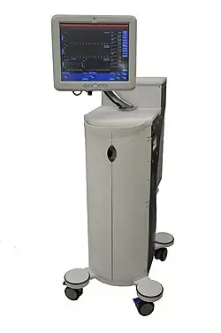 A liquid ventilator is similar to a medical ventilator except that it should be able to ensure reliable total liquid ventilation with a breatheable liquid (a perfluorocarbon).[1][2] Liquid ventilators are prototypes that may have been used for animal experimentations but experts recommend continued development of a liquid ventilator toward clinical applications.[3]