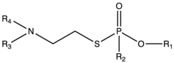 - VX: O-Ethyl S-2-diisopropylaminoethyl methylphosphonothiolate