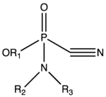 - O-Alkyl (<C10, incl. cycloalkyl) N,N-dialkyl (Me, Et, n-Pr or i-Pr) phosphoramidocyanidates, e.g.
