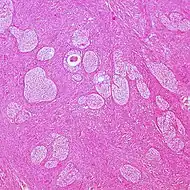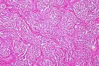 | Endometrioid tumor | 1% | Almost 100% | Tubular glands, resembling endometrium.[22] | ![]() |