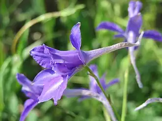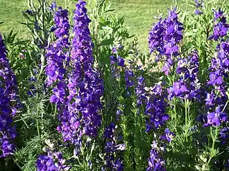 Consolida spp. larkspur Ranunculaceae Young plants and seeds are poisonous, causing nausea, muscle twitches, and paralysis; often fatal. Other plants in the parent genus Delphinium are also poisonous and commonly called larkspur.[97]