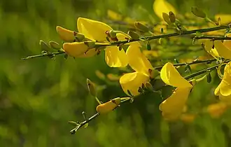 Cytisus scoparius broom, common broom Fabaceae Contains toxic alkaloids that depress the heart and nervous system.[101] The alkaloid sparteine is a class 1a antiarrhythmic agent, a sodium channel blocker. It is not FDA-approved for human use as an antiarrhythmic agent and it is not included in the Vaughn Williams classification of antiarrhythmic drugs.