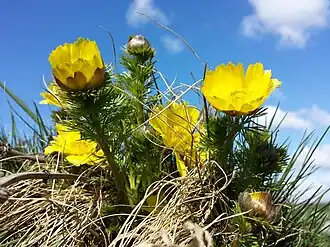 Adonis vernalis pheasant's eye, false hellebore Ranunculaceae The plant is poisonous, containing cardiostimulant compounds such as adonidin and aconitic acid.[42]