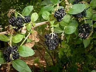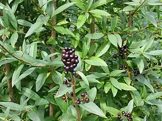 Coriaria myrtifolia redoul Coriariaceae A Mediterranean plant containing the toxin coriamyrtin, ingestion of which produces digestive, neurological, and respiratory problems. The poisonous fruits superficially resemble blackberries and may mistakenly be eaten as such. Can be fatal in children.