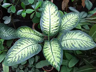 Dieffenbachia spp. dumbcane Araceae All parts are poisonous; the culprits are needle-shaped crystals of calcium oxalate called raphides, which can cause intense burning, reddening of the skin, irritation, and immobility of the tongue, mouth, and throat if ingested. Swelling can be severe enough to block breathing, leading to death, though this is rare; in most cases, symptoms are mild and can be successfully treated with basic analgesics, antihistamines, or charcoal.