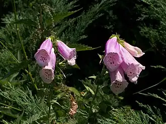 Digitalis purpurea foxglove Plantaginaceae The leaves, seeds, and flowers are poisonous, containing cardiac or other steroid glycosides. These cause irregular heartbeat, general digestive upset, and confusion; can be fatal.