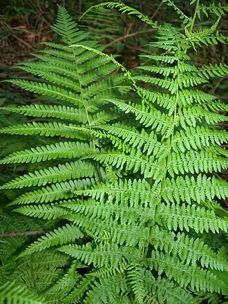 Dryopteridaceae wood ferns, buckler ferns, male ferns Dryopteridaceae The rhizomes of this family are known to contain phloroglucinol derived compounds, previously used to treat nematode infections. Dryopteris filix-mas poisonings consist of vomiting, diarrhea, vertigo, headache, tremor, cold sweats, dyspnea, cyanosis, convulsions, mental disturbances, visual impairment, or blindness which may be temporary or permanent. There is some record of Rumohra adiantiformis (formerly Arachnoides adiantiformis) causing contact dermatitis.[113]