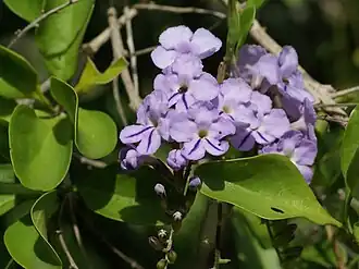 Duranta erecta golden dewdrop, pigeon berry, skyflower Verbenaceae The leaves and berries of the plant are toxic and are confirmed to have killed children, dogs, and cats.[114]