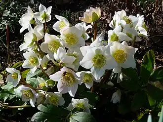 Helleborus niger Christmas rose Ranunculaceae Contains protoanemonin,[138] or ranunculin,[139] which has an acrid taste and can cause burning of the eyes, mouth, and throat, oral ulceration, gastroenteritis, and hematemesis.[140]