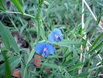 Lathyrus sativus Indian pea, grass pea, chickling pea, white pea Fabaceae A legume grown in Asia and East Africa as an insurance crop for use during famines. Like other grain legumes, L. sativus produces a high-protein seed. The seeds contain variable amounts of β-N-Oxalyl-L-α,β-diaminopropionic acid (ODAP), a neurotoxic amino acid.[12] ODAP causes wasting and paralysis if eaten over a long period, and is considered the cause of the disease neurolathyrism, a neurodegenerative disease that causes paralysis of the lower body and emaciation of gluteal muscle (buttocks). The disease has been seen to occur after famines in Europe (France, Spain, Germany), North Africa, and South Asia, and is still prevalent in Eritrea, Ethiopia, and parts of Afghanistan when Lathyrus seed is the exclusive or main source of nutrients for extended periods.