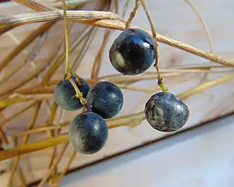 Vitis spp. grape Vitaceae Potentially toxic to dogs, although the precise mechanism is not fully understood. See grape and raisin toxicity in dogs.