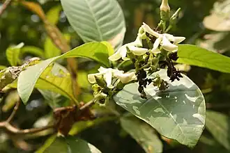 Cleistanthus collinus Phyllanthaceae Ingestion of its leaves or a dicoction of its leaves causes hypokalemia (kaliuresis and cardiac arrhythmias),[83] metabolic acidosis, hypotension, and hypoxia.[84]