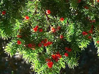 214. Hook, Ingrid; Christiane Poupat; Alain Ahond; Daniel Guénard; Francoise Guéritte; Marie-Thérèse Adeline; Xiu-Ping Wang; Dairine Dempsey; Séverine Breuillet; Pierre Potier (November 1999). "Seasonal variation of neutral and basic taxoid contents in shoots of European Yew (Taxus baccata)". Phytochemistry. 52 (6): 1041–1045. Bibcode:1999PChem..52.1041H. doi:10.1016/S0031-9422(99)00264-2.