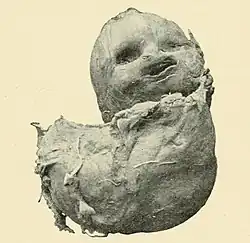 Lithopedion was first described in a treatise by the Spanish Muslim physician Abū al-Qāsim (Abulcasis) in the 10th century.[5] By the mid-18th century, a number of cases had been documented in humans, sheep and hares in France and Germany. In a speech before the French Académie Royale des Sciences in 1748, surgeon Sauveur François Morand used lithopedia both as evidence of the common nature of fetal development in viviparous and oviparous animals, and as an argument in favor of caesarean section.[6]