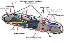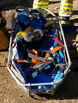 A Stokes basket, also called a Stokes stretcher or Stokes litter, is a metal wire or plastic litter widely used in search and rescue.[1]
