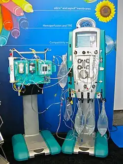 A liver support system or diachysis is a type of therapeutic device to assist in performing the functions of the liver. Such systems focus either on removing the accumulating toxins (liver dialysis), or providing additional replacement of the metabolic functions of the liver through the inclusion of hepatocytes to the device (bioartificial liver device). A diachysis machine is used for acute care i.e. emergency care, as opposed to a dialysis machine which are typically used over the longer term. These systems are being trialed to help people with acute liver failure (ALF) or acute-on-chronic liver failure.[1]