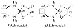 The structure of lobaplatin (1,2-diammino-methyl-cyclobutane-platinum (II) lactate) consists of a platinum(II) metal center coordinated to a bidentate amine ligand (1,2-bis(aminomethyl)cyclobutane) and a lactic acid leaving group.[2] Lobaplatin is administered intravenously by bolus injection or infusion and composed of an approximate 50/50 mixture of two diastereoisomers, R,R,S- and S,S,S-configurations.[3]