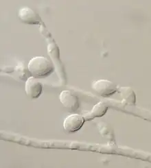 - ↑ 5.0 5.1 Sigler, L (2003). "Chapter 11: Miscellaneous opportunistic fungi: Microascaceae and other Ascomycetes, Hyphomycetes, Coelomycetes and Basidiomycetes". In Howard DH (ed.). Pathogenic fungi in humans and animals (2nd ed.). New York: Marcel Dekker. pp. 637–676. ISBN 978-0824706838.