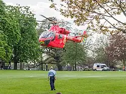 London's Air Ambulance Charity is a registered charity that operates a helicopter emergency medical service (HEMS) dedicated to responding to serious trauma emergencies in and around London.[4] Using a helicopter from 08:00 to sunset and rapid response vehicles by night, the service performs advanced medical interventions at the scene of the incident in life-threatening, time-critical situations.