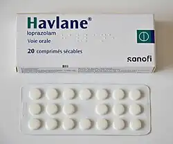 Loprazolam (triazulenone) marketed under many brand names is a benzodiazepine medication. It possesses anxiolytic, anticonvulsant, hypnotic, sedative and skeletal muscle relaxant properties. It is licensed and marketed for the short-term treatment of moderately-severe insomnia.[2]