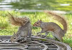 Lordosis behavior (/lɔːrˈdoʊsɪs/[1]), also known as mammalian lordosis (Greek lordōsis, from lordos "bent backward"[1]) or presenting, is the naturally occurring body posture for sexual receptivity to copulation present in females of most mammals including rodents, elephants, and cats. The primary characteristics of the behavior are a lowering of the forelimbs but with the rear limbs extended and hips raised, ventral arching of the spine and a raising, or sideward displacement, of the tail. During lordosis, the spine curves dorsoventrally so that its apex points towards the abdomen.