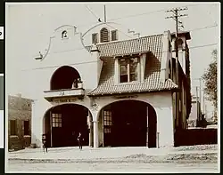By 1900, the department had grown to 18 fire stations with 123 full-time paid firefighters and 80 fire horses.[18] The city had also installed 194 fire-alarm boxes allowing civilians to sound the alarm if a fire was spotted. 660 fire hydrants were placed throughout the city, giving firefighters access to a reliable water source.[19] In 1955 Station 78 in Studio City became the first racially integrated station in the department.[20]