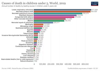27. 27.0 27.1 GBD 2015 LRI Collaborators (November 2017). "Estimates of the global, regional, and national morbidity, mortality, and aetiologies of lower respiratory tract infections in 195 countries: a systematic analysis for the Global Burden of Disease Study 2015". The Lancet. Infectious Diseases. 17 (11): 1133–1161. doi:10.1016/S1473-3099(17)30396-1. PMC 5666185. PMID 28843578. {{cite journal}}: |author1= has generic name (help)CS1 maint: numeric names: authors list (link)