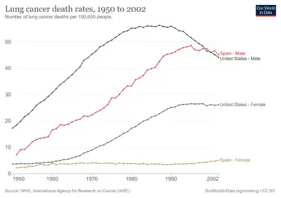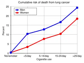 - ↑ "Gender in lung cancer and smoking research" (PDF). World Health Organization. 2004. Archived (PDF) from the original on 14 June 2007. Retrieved 26 May 2007. Archived 14 June 2007 at the Wayback Machine