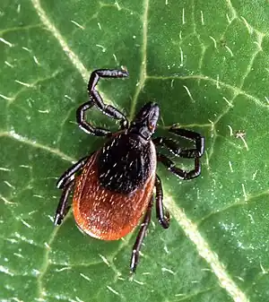 | An adult deer tick (most cases of Lyme are caused by nymphal rather than adult ticks) | |