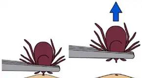 Attached ticks should be removed promptly. Risk of infection increases with time of attachment, but in North America risk of Lyme disease is small if the tick is removed within 36 hours.[141] CDC recommends inserting a fine-tipped tweezer between the skin and the tick, grasping very firmly, and pulling the closed tweezer straight away from the skin without twisting, jerking, squeezing or crushing the tick.[142] After tick removal, any tick parts remaining in the skin should be removed with the tweezer, if possible.[142] Wound and hands should then be cleaned with alcohol or soap and water.[142] The tick may be disposed by placing it in a container with alcohol, sealed bag, tape or flushed down the toilet.[142] The bitten person should write down where and when the bite happened so that this can be informed to a doctor if the person gets a rash or flu-like symptoms in the following several weeks.[142] CDC recommends not using fingers, nail polish, petroleum jelly or heat on the tick to try to remove it.[142]