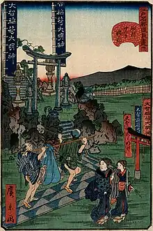 A man in Japan is helped to carry his enlarged scrotum