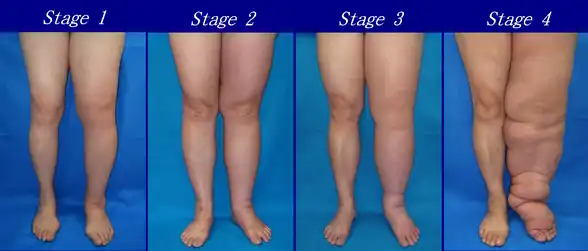 • Stage 5: The affected limb(s) become grossly large; one or more deep skin folds is prevalent among patients in this stage.