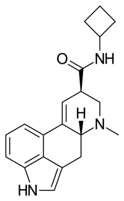 Lysergic acid cyclobutylamide (LAcB or C4AL), also known as N-cyclobutyllysergamide (NCB-LA), is a semisynthetic lysergamide that is synthesized from naturally occurring ergot alkaloids found in Claviceps purpurea.[1][2] It has oxytocic effects on the isolated rat uterus similarly to other lysergamides, shows antiserotonergic effects in the isolated rat intestine similarly to lysergic acid diethylamide (LSD), has mydriatic effects similarly to LSD when administered to mice, and produces other biological effects.[1][3] Despite being more effective than LSD in various bioassays however, LAcB did not have psychedelic effects in humans.[1] The drug was first described in the scientific literature by 1958.[3]