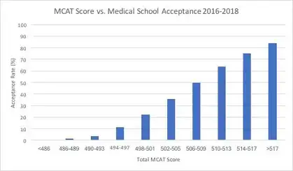 - ↑ "MCAT and GPA Grid for Applicants and Acceptees to U.S. Medical Schools, 2016–2017 through 2017–2018" (PDF). Association of American Medical Colleges.