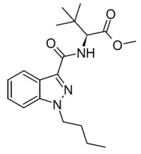 MDMB-BINACA (MDMB-BUTINACA) is an indazole-3-carboxamide based synthetic cannabinoid receptor agonist that has been sold as a designer drug, first identified in Sweden in May 2023. It has a similar chemical structure to potent cannabinoid agonists previously reported such as ADB-BUTINACA and MDMB-5'Br-BUTINACA, and is believed to have similar effects.[1]