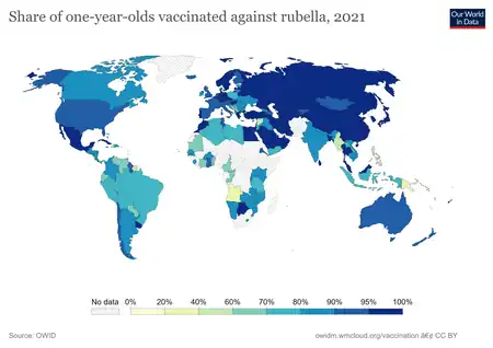 - ↑ Ou, Alan C. (2024). "Progress Toward Rubella and Congenital Rubella Syndrome Elimination — Worldwide, 2012–2022". MMWR. Morbidity and Mortality Weekly Report. doi:10.15585/mmwr.mm7308a2. Archived from the original on 5 April 2024. Retrieved 14 June 2024. Archived 5 April 2024 at the Wayback Machine