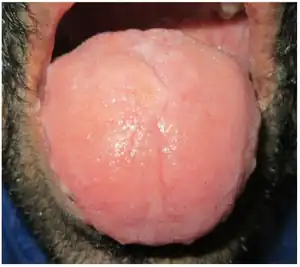 Macroglossia is the medical term for an unusually large tongue.[1] Severe enlargement of the tongue can cause cosmetic and functional difficulties in speaking, eating, swallowing and sleeping. Macroglossia is uncommon, and usually occurs in children. There are many causes. Treatment depends upon the exact cause.