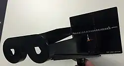 • "Hold the device up to your eyes and look into the eye piece as if you're reading a book."