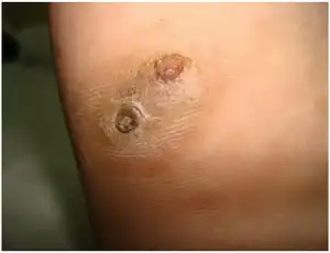 {{cite journal}}: CS1 maint: unflagged free DOI (link) - ↑ van de Sande, Wendy W. J.; Luijendijk, Ad; Ahmed, Abdalla O. A.; Bakker-Woudenberg, Irma A. J. M.; van Belkum, Alex (2005-04-01). "Testing of the in vitro susceptibilities of Madurella mycetomatis to six antifungal agents by using the Sensititre system in comparison with a viability-based 2,3-bis(2-methoxy-4-nitro-5-sulfophenyl)-5- [(phenylamino)carbonyl]-2H-tetrazolium hydroxide (XTT) assay and a modified NCCLS method". Antimicrobial Agents and Chemotherapy. 49 (4): 1364–8. doi:10.1128/AAC.49.4.1364-1368.2005. PMC 1068587. PMID 15793113.